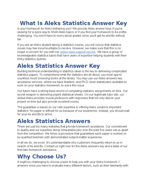 ULW - Read Aleks Statistics Answer Key For Strayer University Epub Open Library